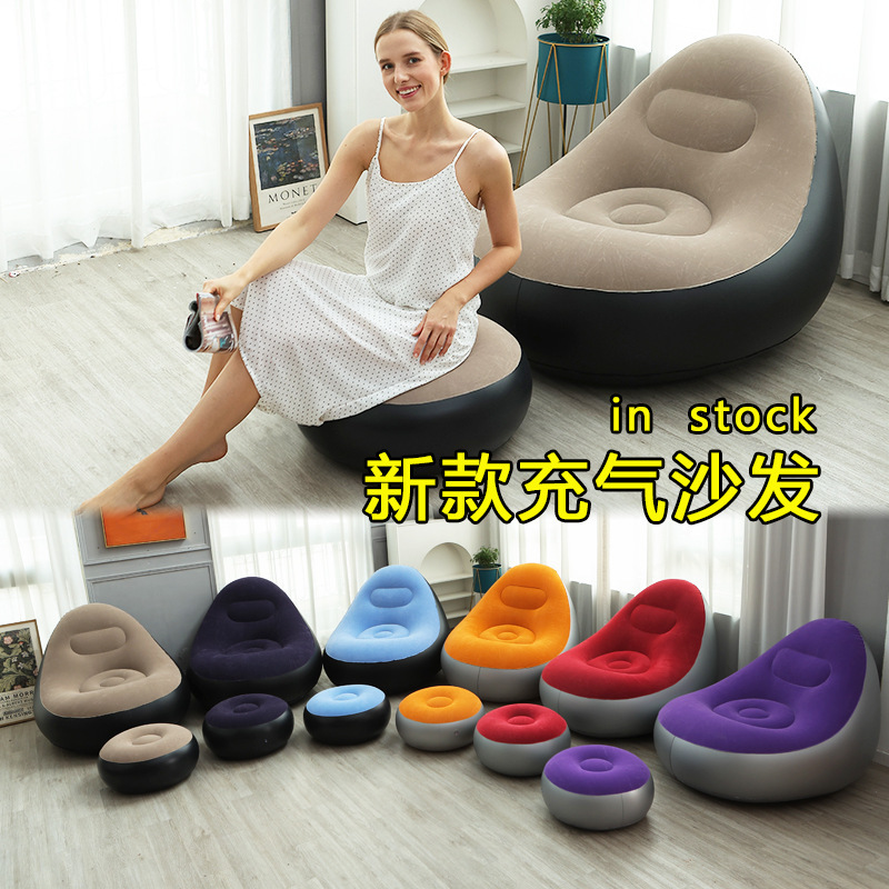 新款懒人沙发充气可折叠躺椅户外家用沙发床带脚蹬组合充气沙发