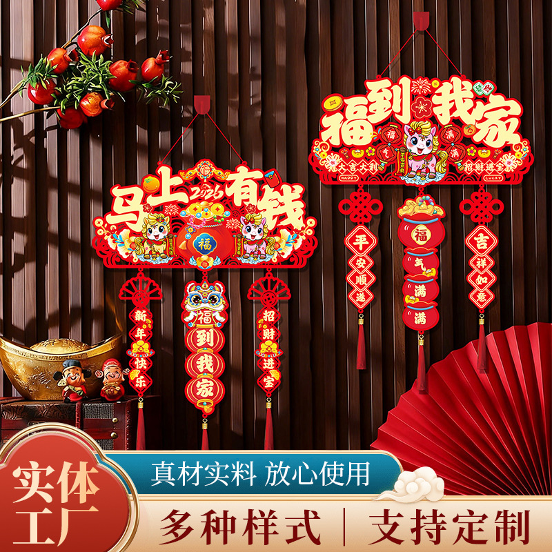 新年装饰品贺年春节过年入户门对联挂饰客厅福字节庆挂件批发制作