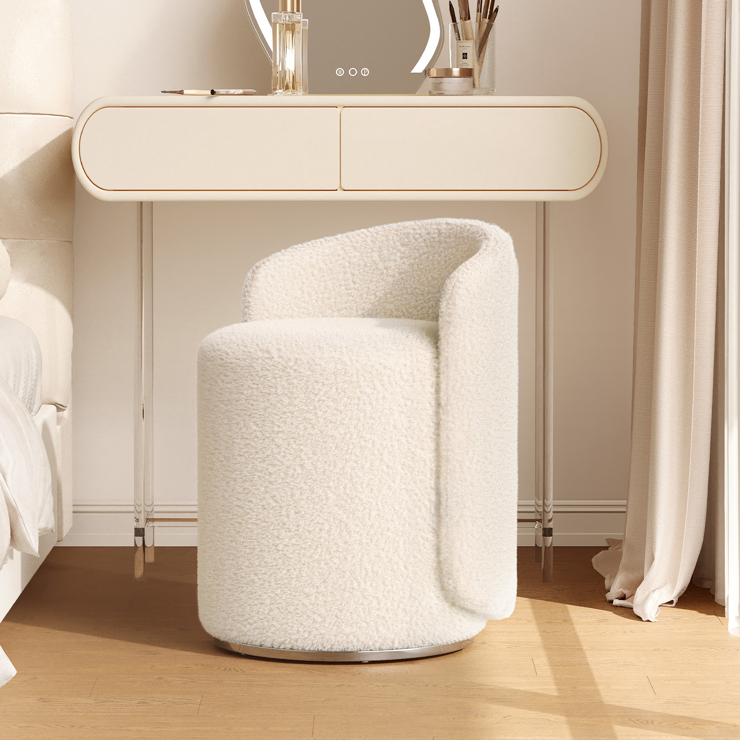 化妆凳轻奢高级感家用凳子靠背女生卧室梳妆台椅子圆凳旋转美甲椅