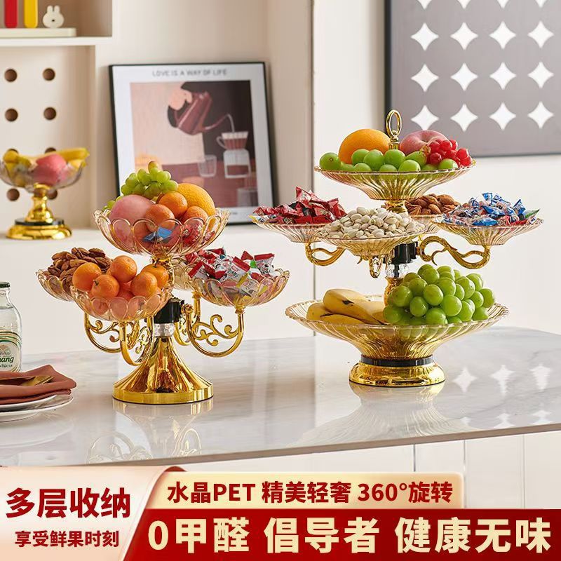 多层可旋转果盘家用轻奢多层客厅高档多格水晶果盘零食干果糖果盘