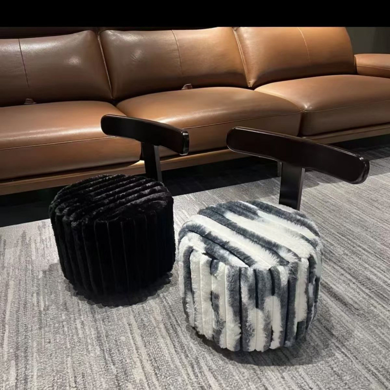 新款流体雕塑沙发墩不锈钢哑光玄关凳轻奢羊羔绒坐墩多巴胺换鞋凳