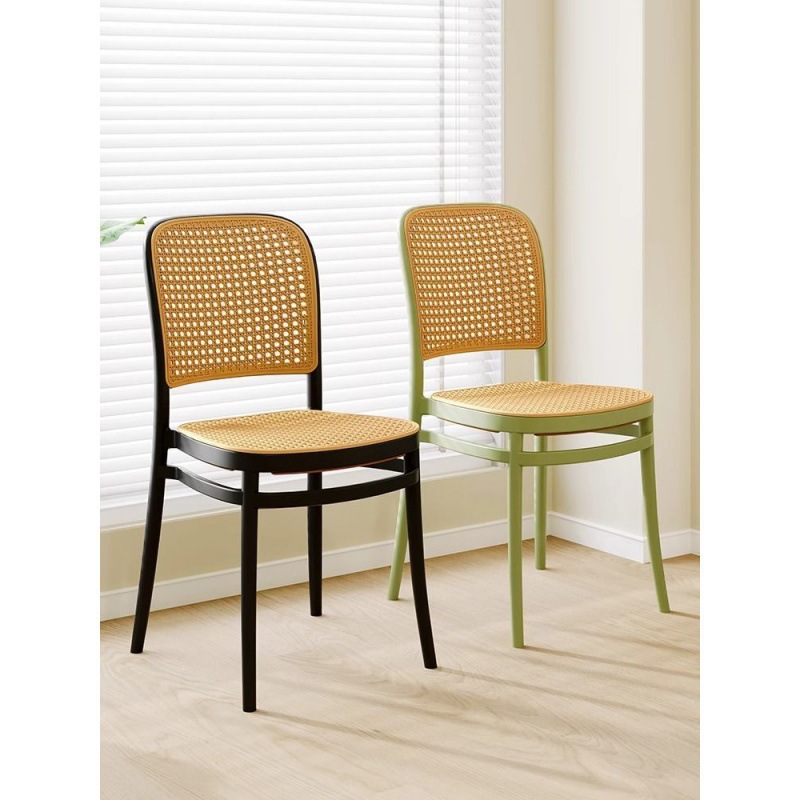 北欧餐椅加厚餐厅靠背椅户外休闲仿藤编椅庭院椅子可叠放塑料椅子