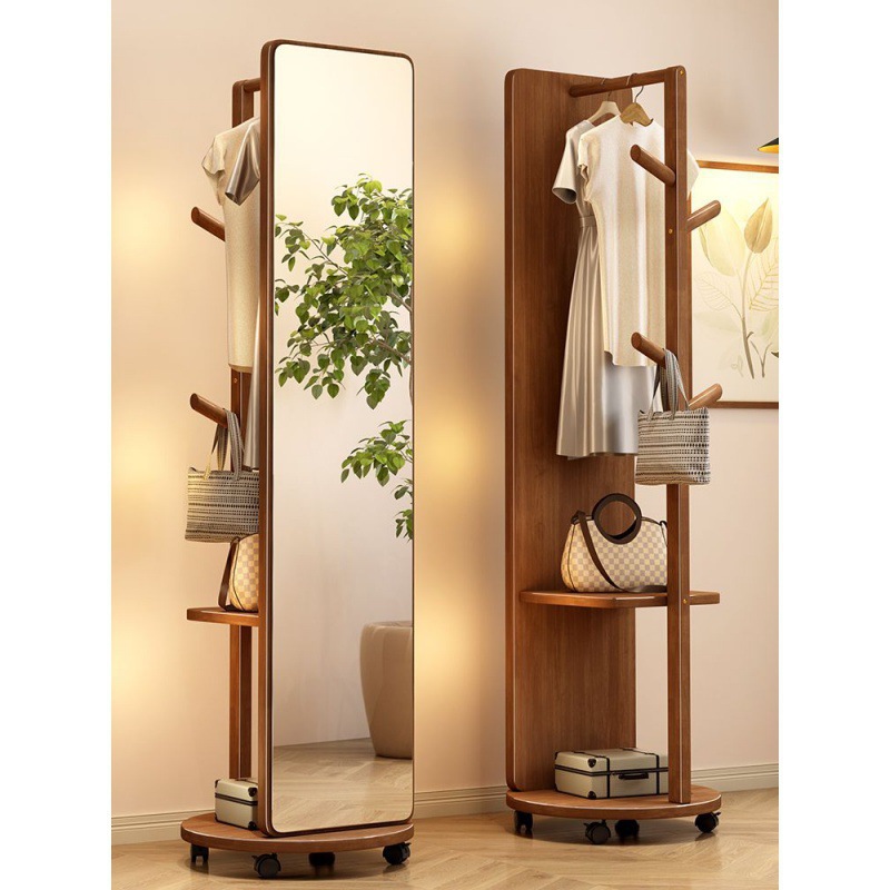 实木落地镜穿衣镜置物挂衣架衣帽架一体卧室试衣镜家用旋转全身镜
