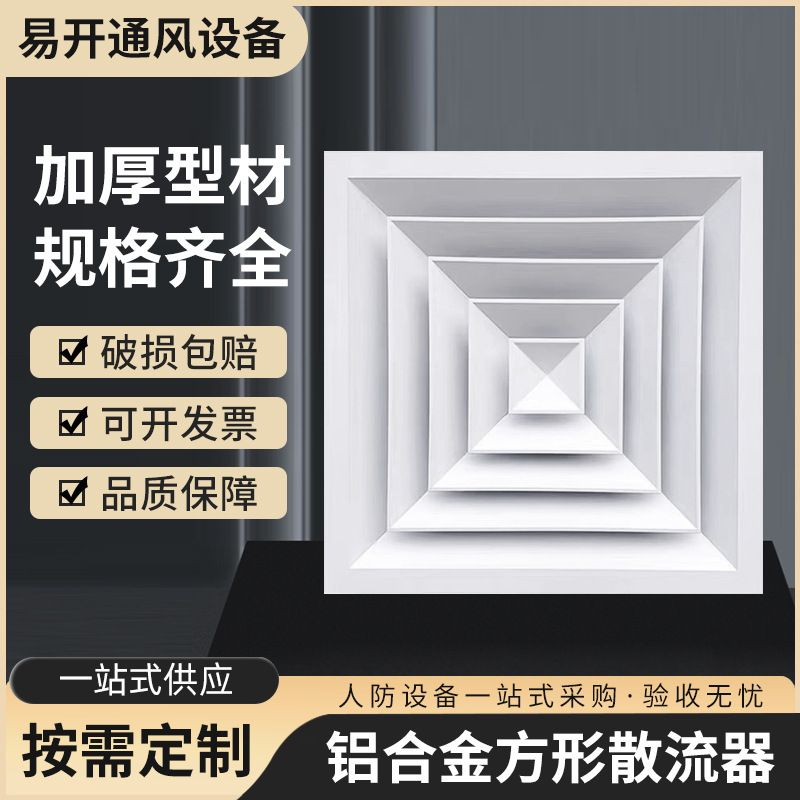 铝合金方形散流器出风口中央空调矿棉石膏板四面出风百叶防水型