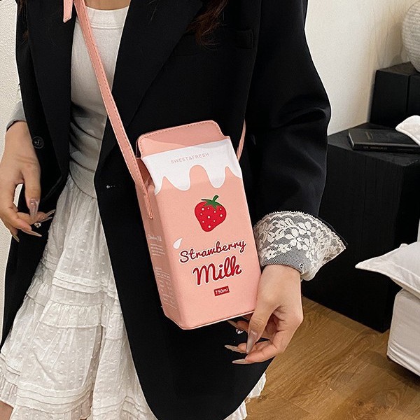 2025四季新款时尚清新牛奶撞色少女小包印花韩版斜挎包单肩包女包