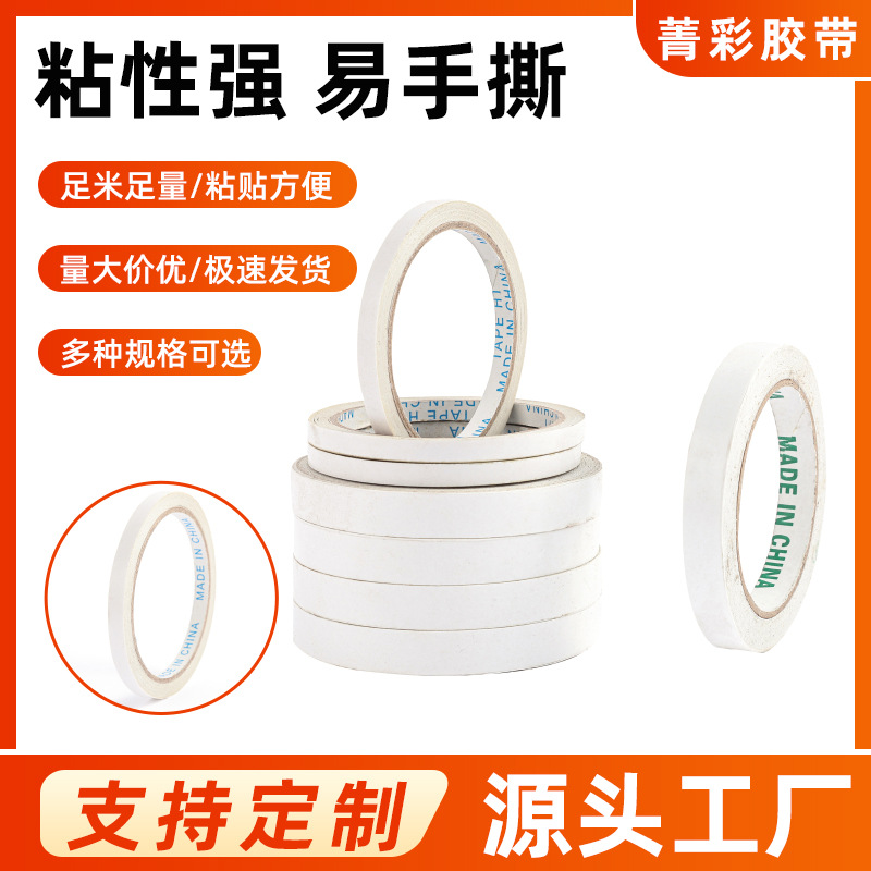 白色热熔透明双面胶高粘度双面胶带强粘性学生手工办公可手撕棉纸