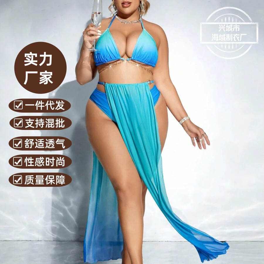 2025欧美爆款ins风渐变色网纱长裙性感比基尼套装bikini泳装
