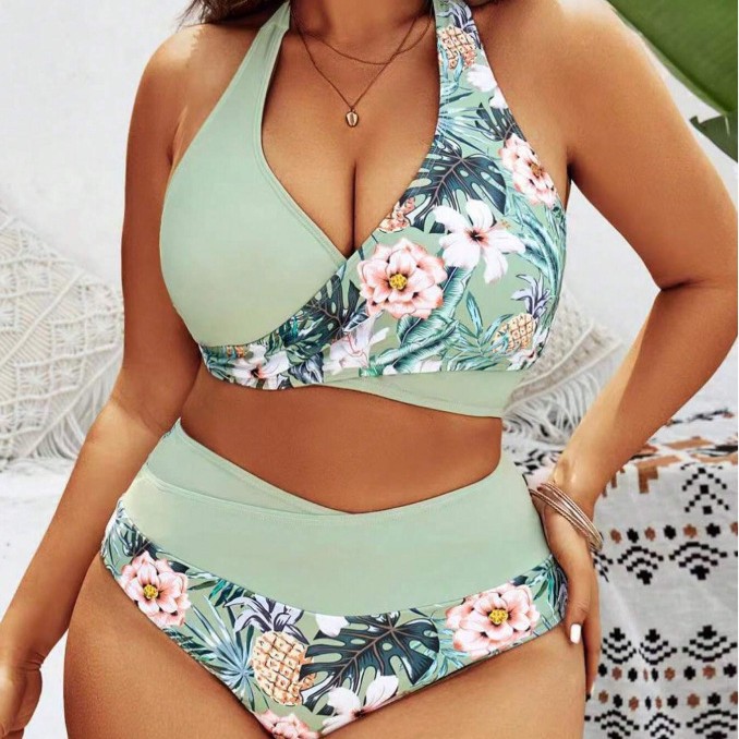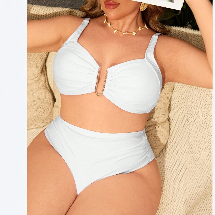 2025新款欧美大码分体泳衣女v领性感外贸跨境沙滩度假比基尼泳衣