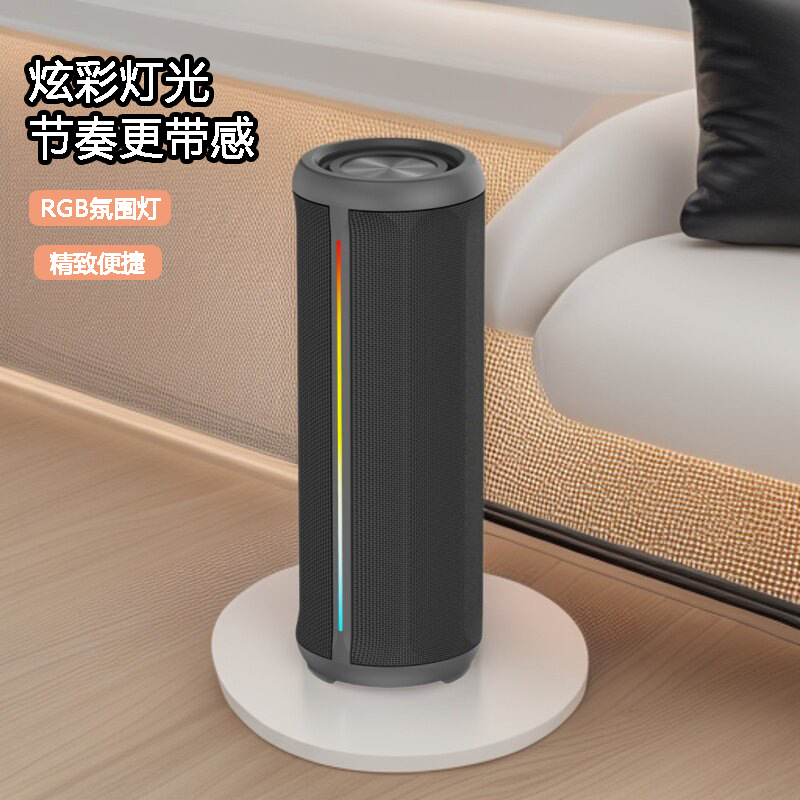 双喇叭无线蓝牙音箱户外防水便携式超重低音炮带RGB灯圆柱布艺音