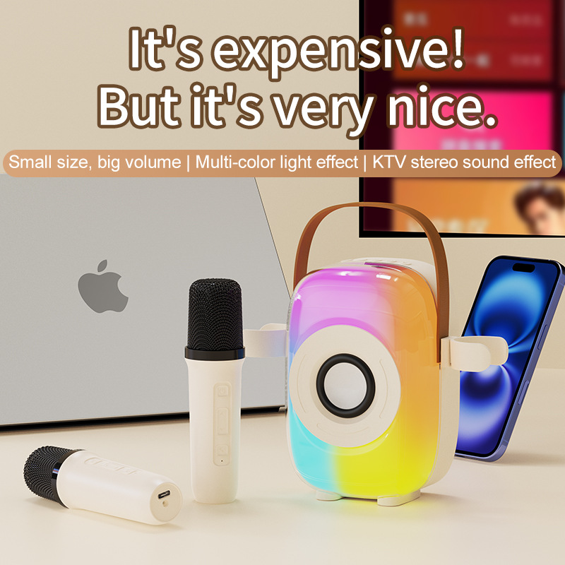 便携式RGB炫彩K歌麦克风音箱 一体家用便携手提无线话筒音箱 跨境