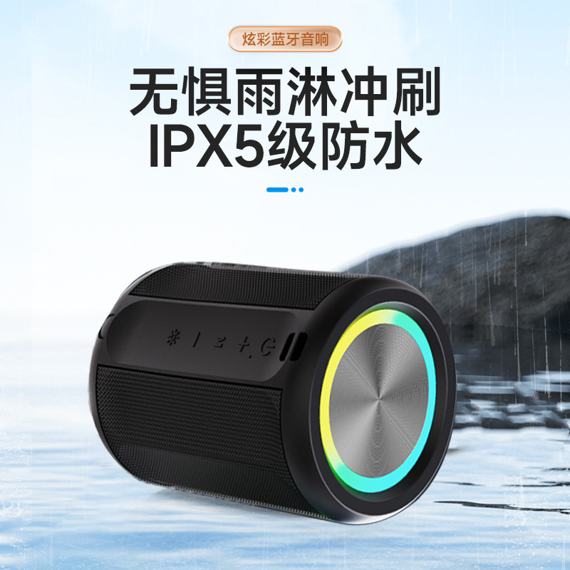 跨境爆款防水蓝牙音响户外露营便携式插卡音响重低音 3D 灯光低音