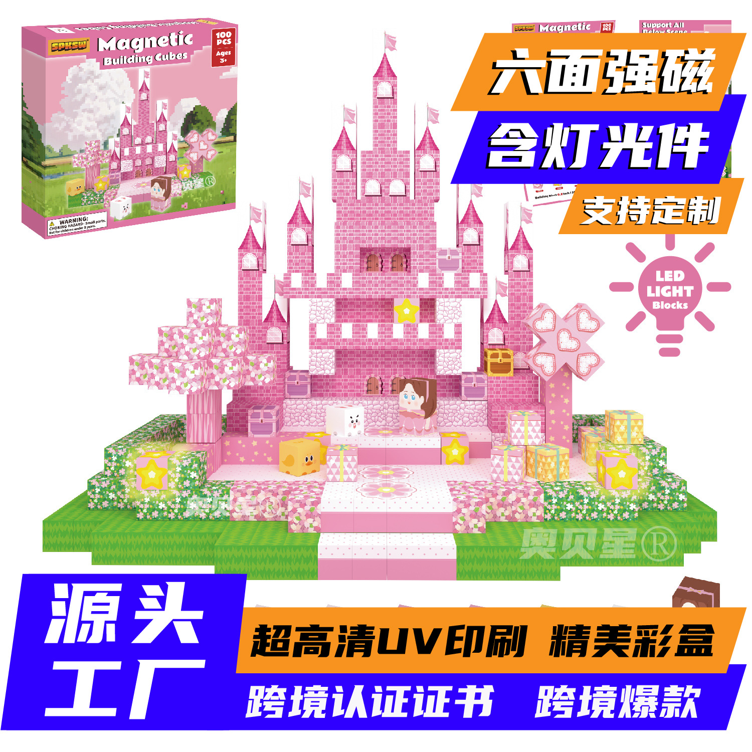 跨境亚马逊爆款粉色城堡世界方块磁力积木套装STEM益智玩具批发