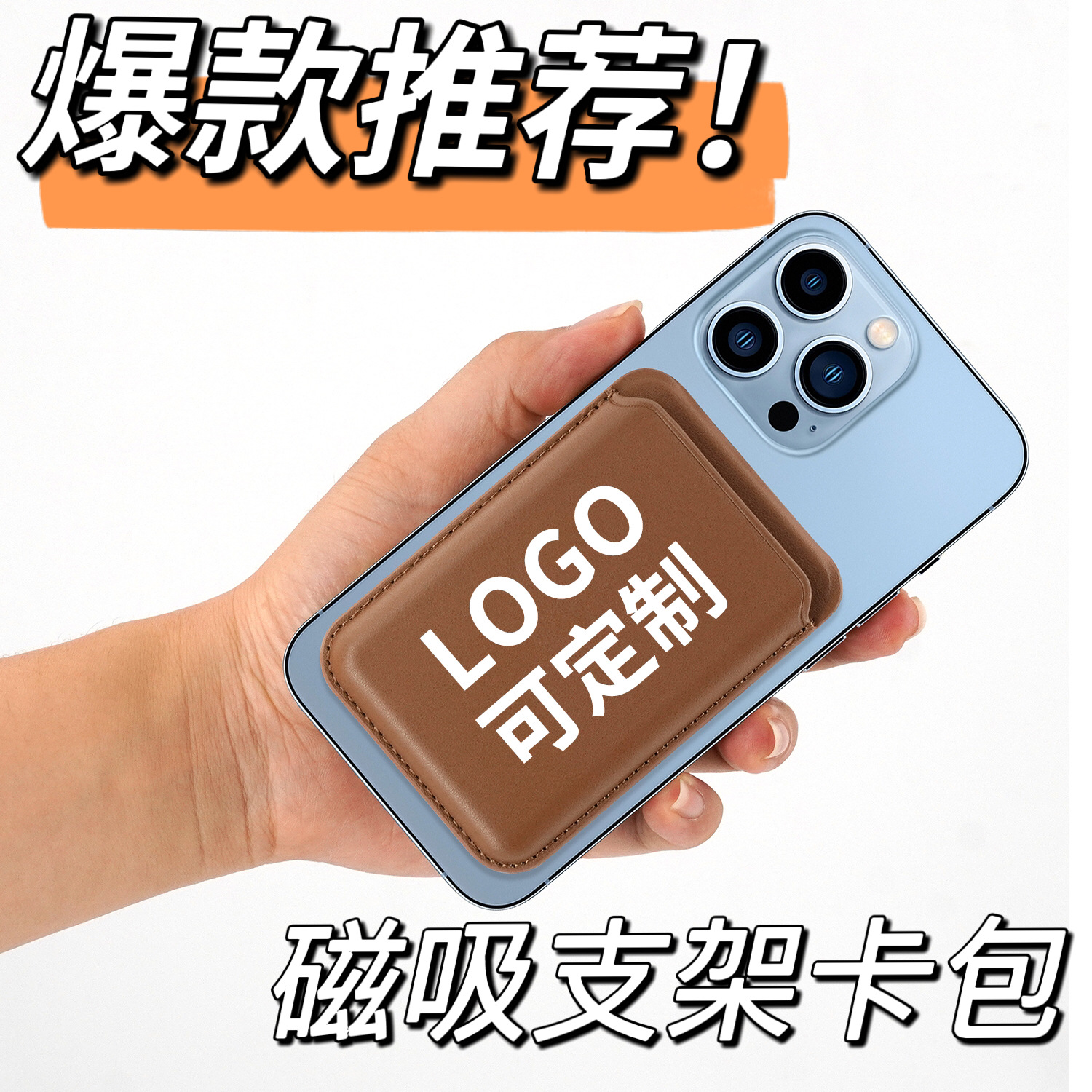 现货磁吸手机支架卡包强磁Magsafe适用苹果pu皮革卡套可定logo