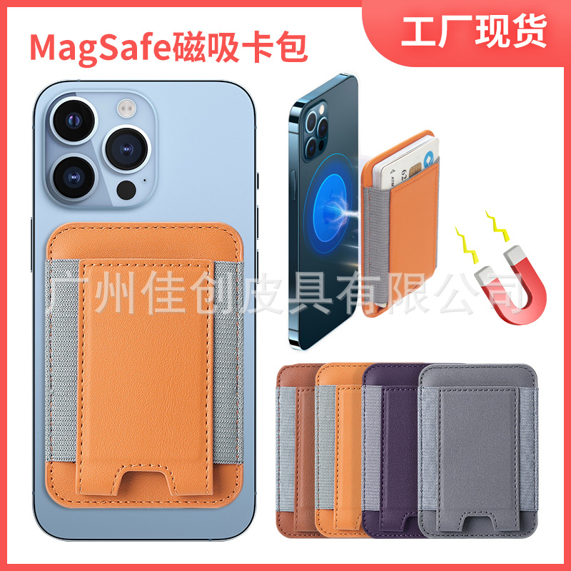 磁吸松紧布橡筋MagSafe皮革卡包卡套钱夹适用苹果iPhone系列商务
