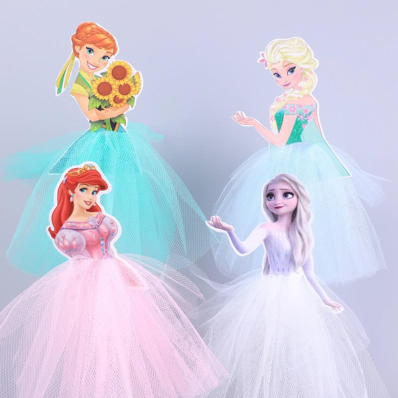 艾莎安娜公主网纱甜品插件卡通纱裙公主系列生日蛋糕烘焙装饰插牌