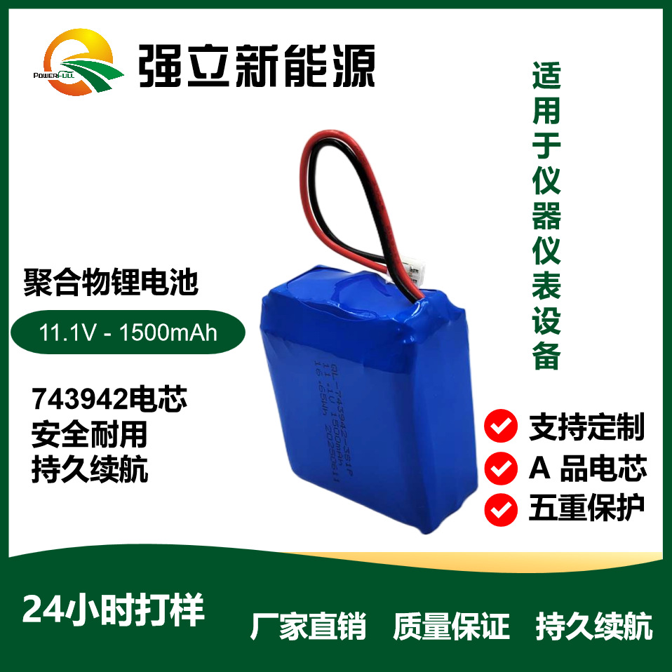 11.1V1500mAh仪器仪表设备聚合物锂电池安全性高足容A品锂电池