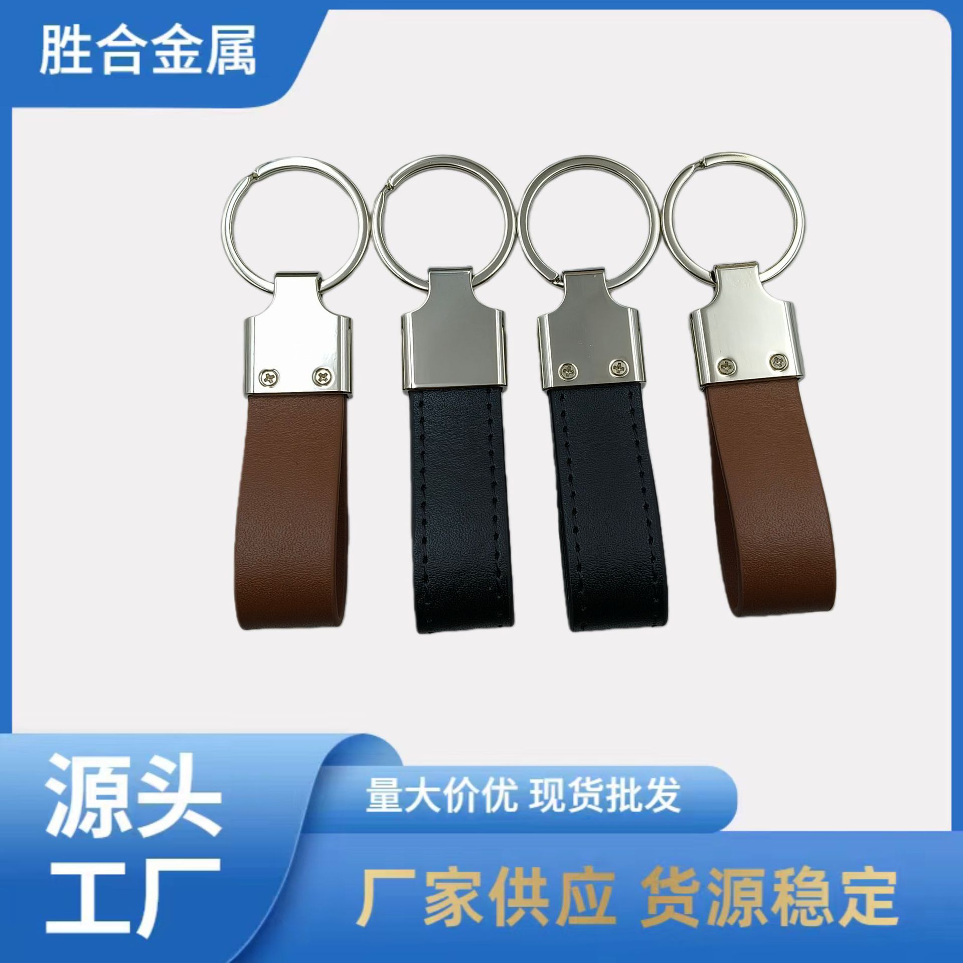 厂家直销五金钥匙扣 金属皮革钥匙扣 PU皮钥匙扣压印LOGO刻字激光
