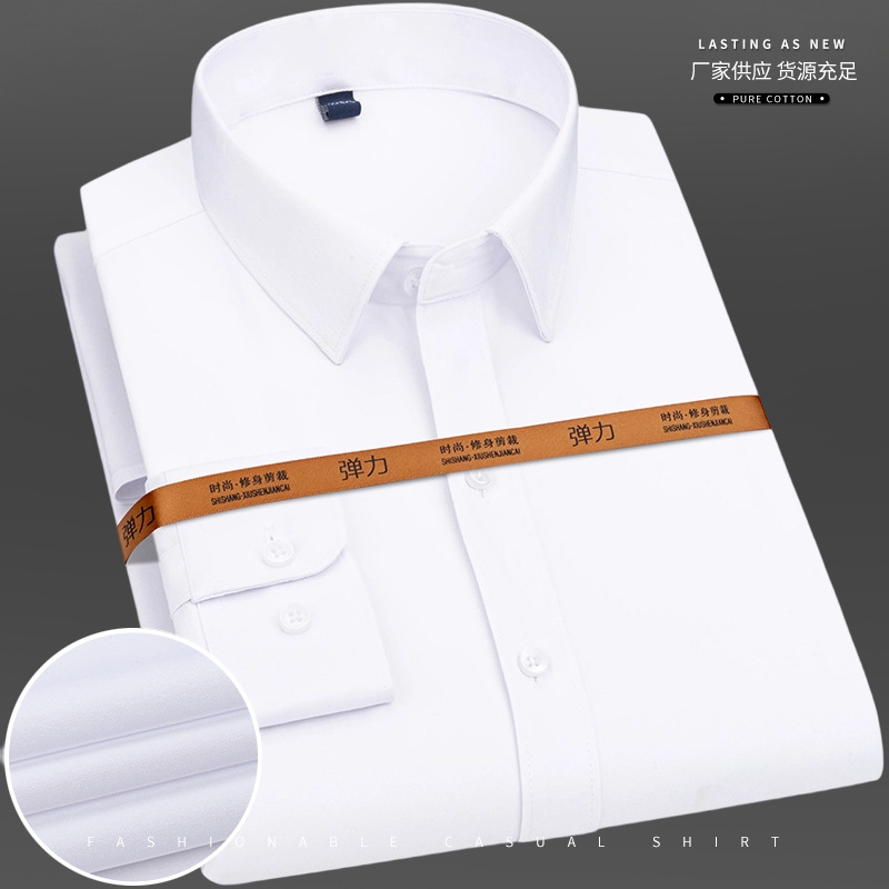 新款简约男装青年休闲翻领衬衣弹力舒适商务工装翻领长袖白衬衫