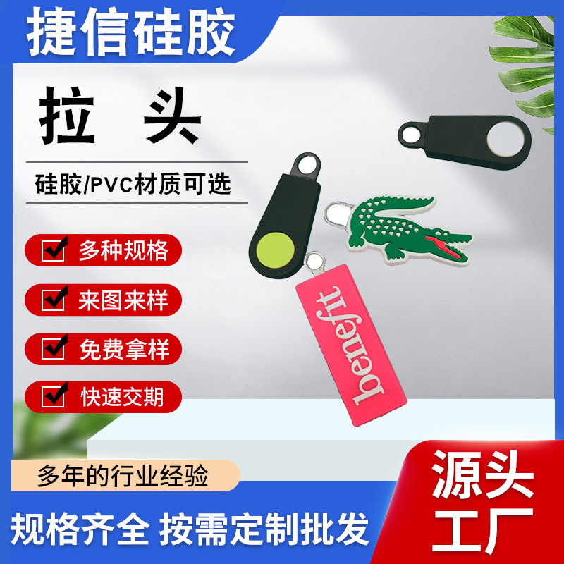 硅胶滴胶双面LOGO拉头 服装挂绳软拉尾填色拉链头 PVC浸胶拉头