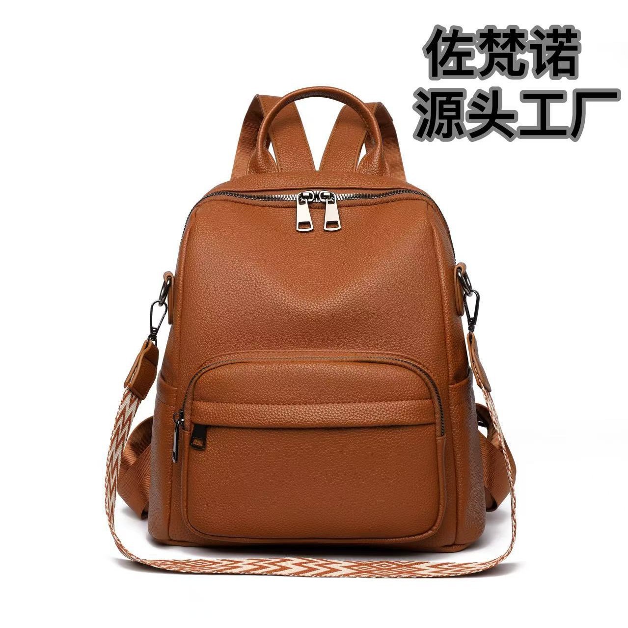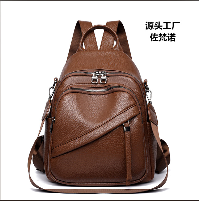 跨境百搭女士双肩包学生书包荔枝纹软皮背包斜挎包三用包潮流百搭
