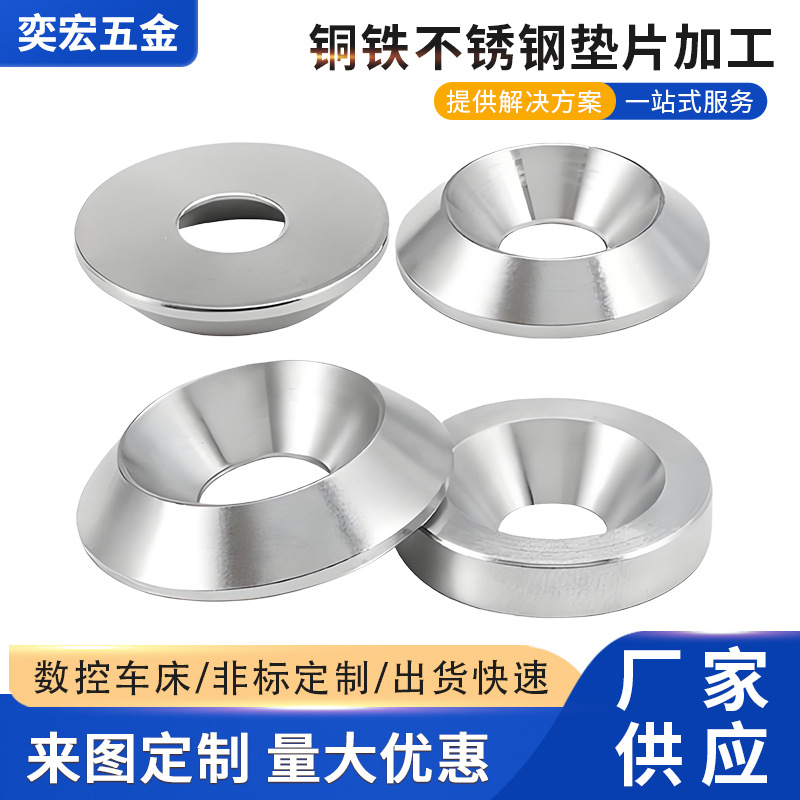 cnc加工五金不锈钢垫片锥形凹孔铝合金螺丝垫片密封圈高精度加工