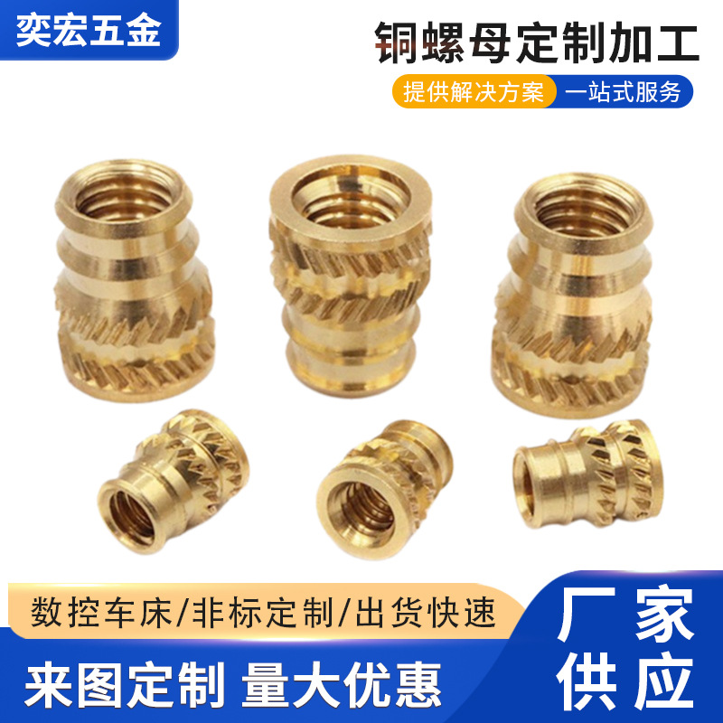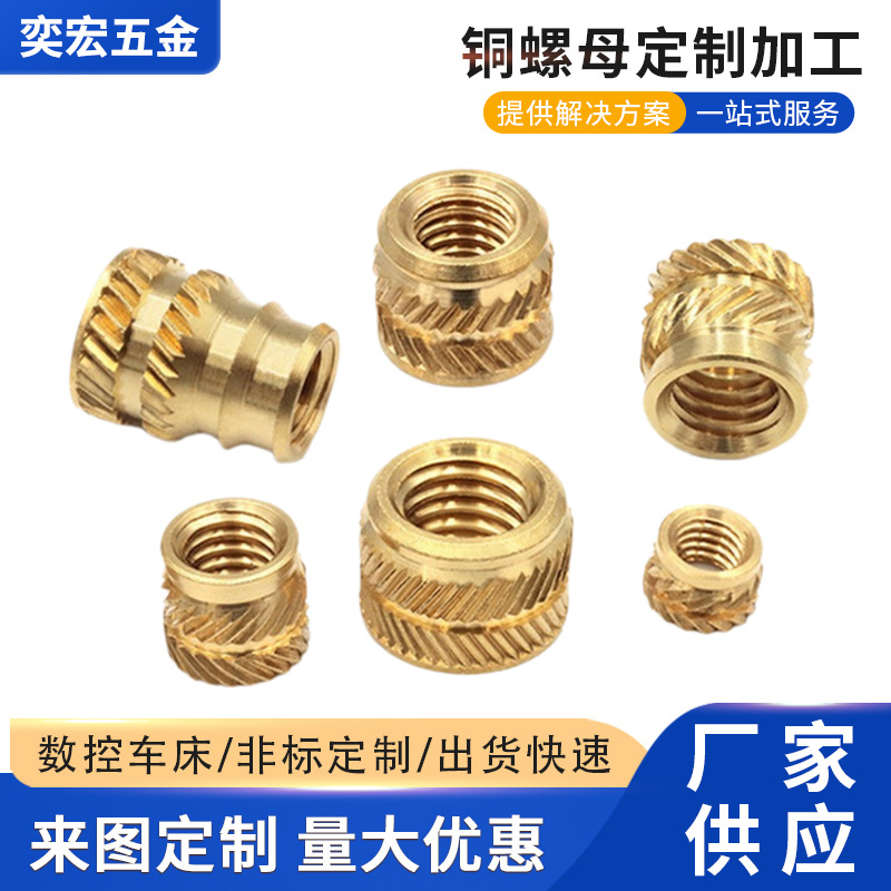 数控车床加工CNC五金零件铜螺母热熔镶件滚花铜嵌件高精度加工