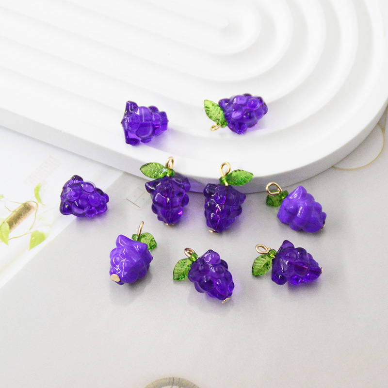 亚克力绿叶葡萄挂件亚克力通孔珠水果珠diy饰品配件耳饰吊坠材料