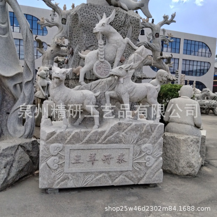 芝麻灰三阳开泰吉祥店面广场石雕花岗岩登山羊三羊开泰装饰摆件