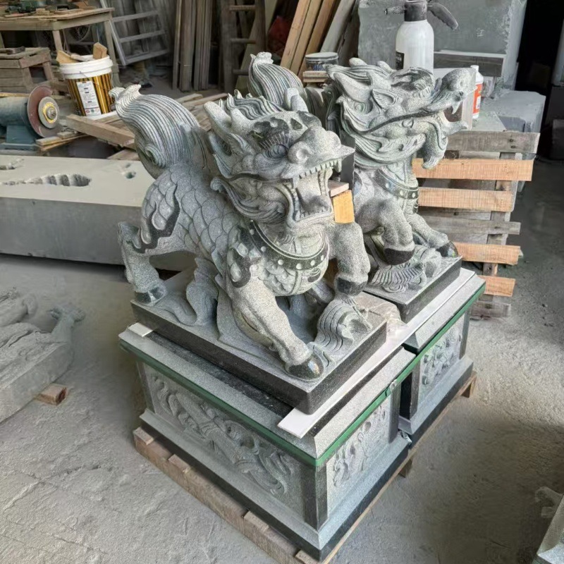 花岗岩石雕狮子 寺庙豪宅入口大理石北京狮雕塑 青石南狮造型