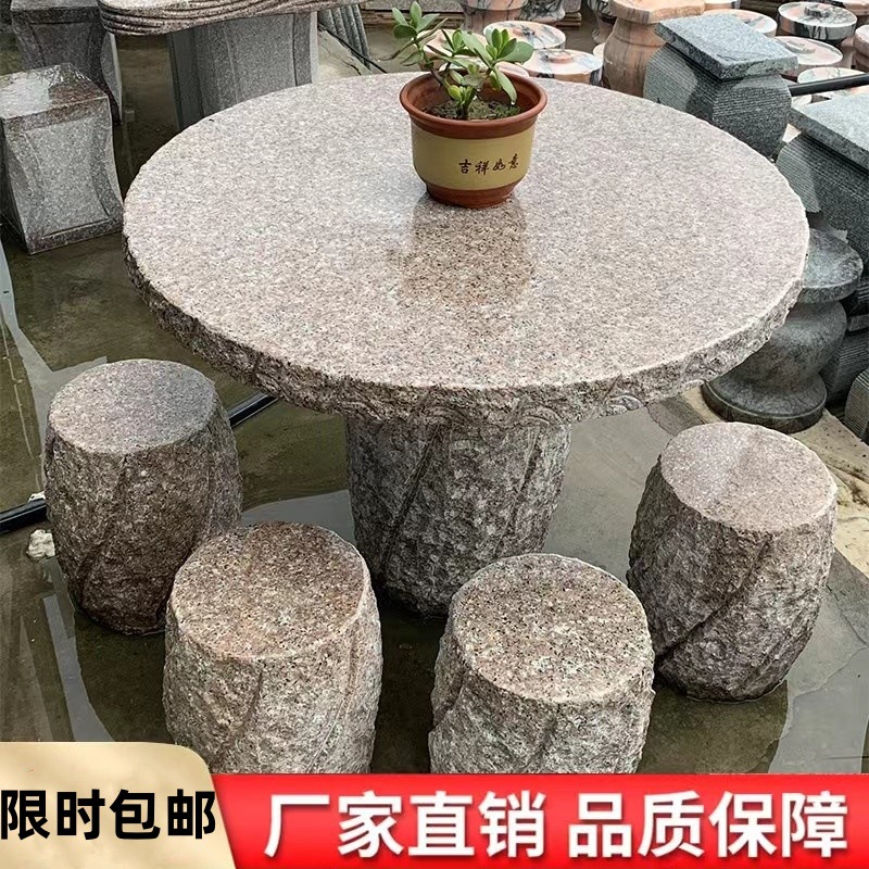 石桌石凳庭院一套别墅家用圆桌天然花岗岩公园特价大理石户外摆件