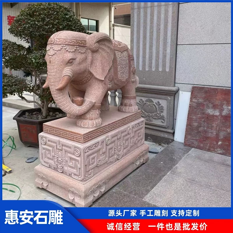 福建红色大门口吉祥大象 石大象看门招财镇宅摆件 吸水卷鼻小象