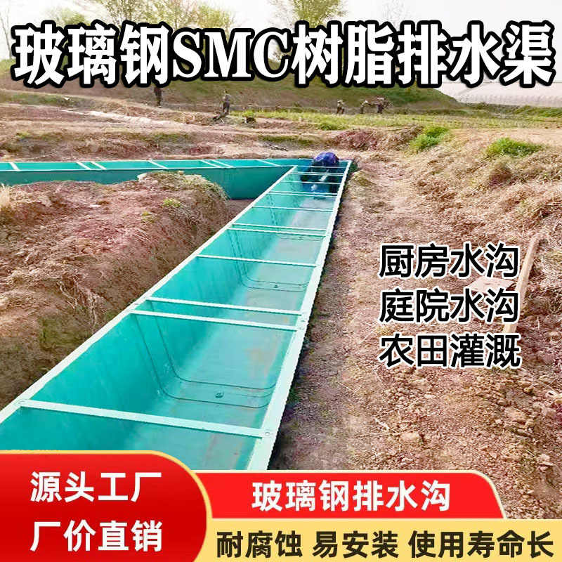 玻璃钢排水渠农村灌溉模压U型储水水渠复合树脂下水道排水渠厂家