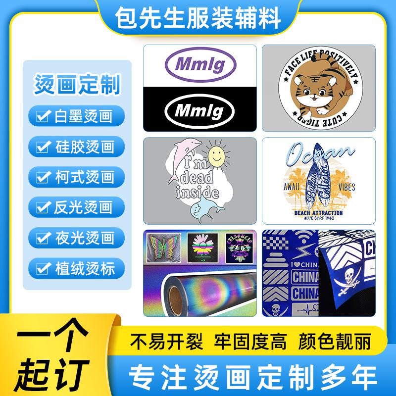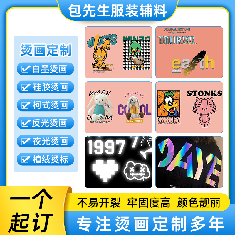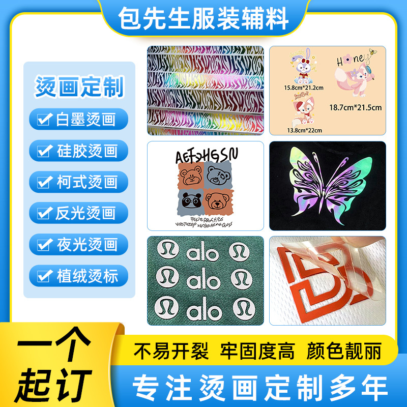 烫画热转印高弹耐水洗反光烫画服装logo箱包反光烫标制作定制