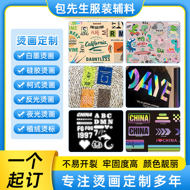 厂家热转印烫画反光烫画贴 胶印洗水标服装印花烫画加工烫画贴