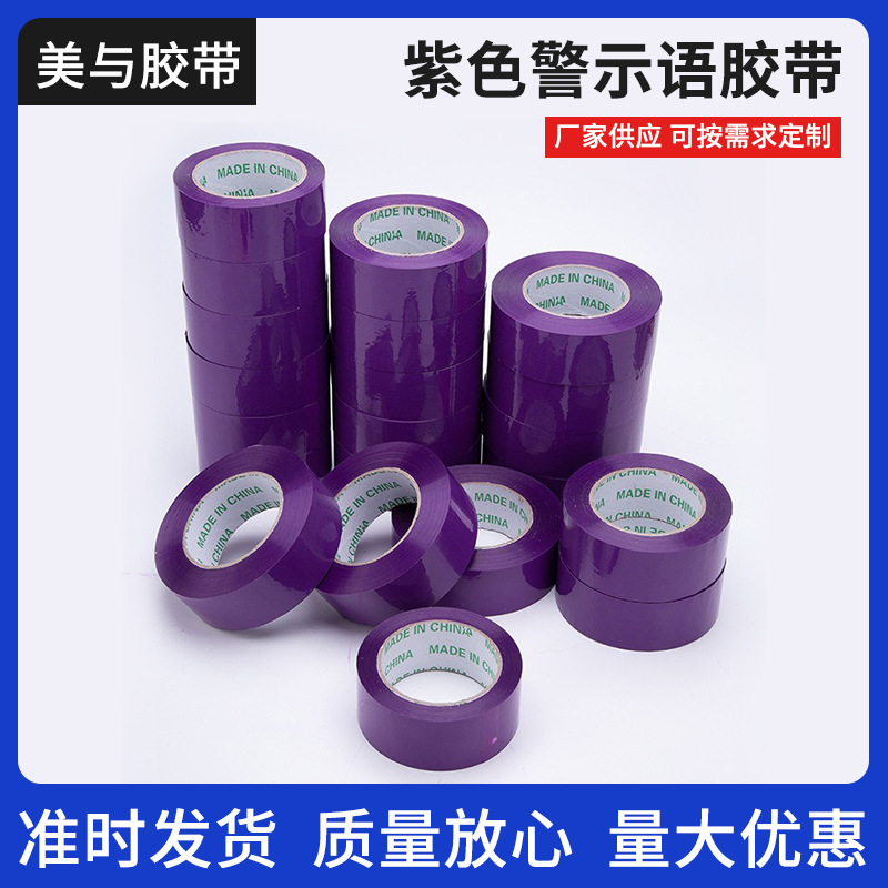 6cm宽紫色警示语胶带彩色封箱带快递彩色打包带紫色封箱胶带批发