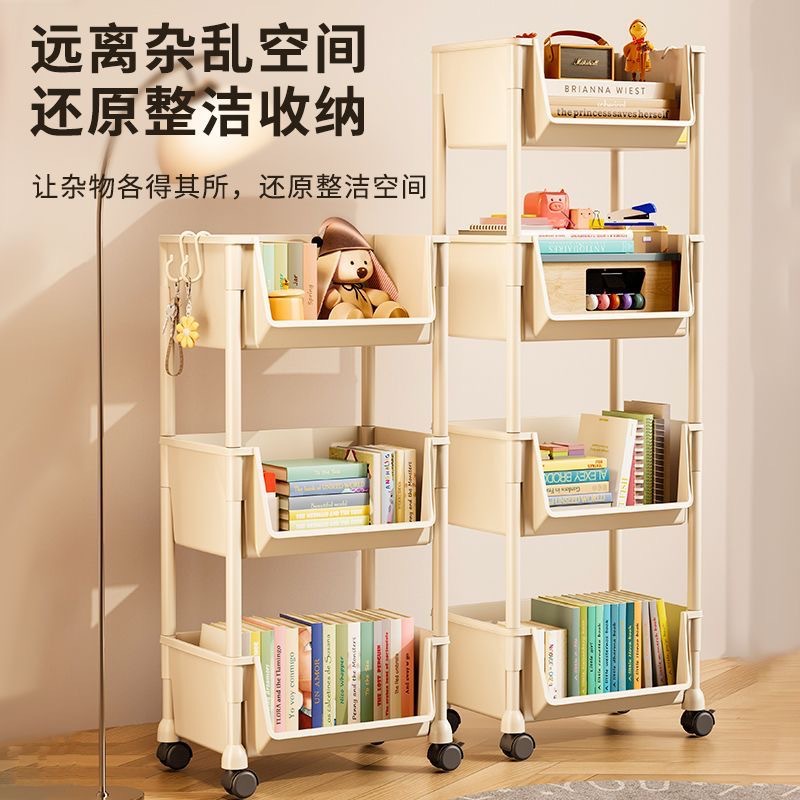 移动书架零食置物架多层收纳架落地带轮小推车客厅厨房卧室储物架