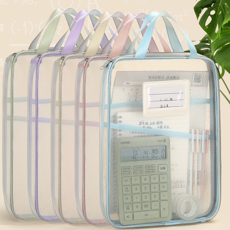 批发手提网纱科目袋大容量文件袋学生补习袋 试卷收纳多功能文具