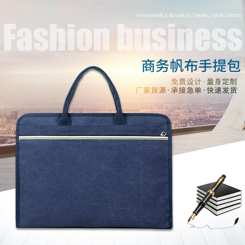 帆布公文包拉链式文件袋商务会议横款出差休闲包会议包拉链设计