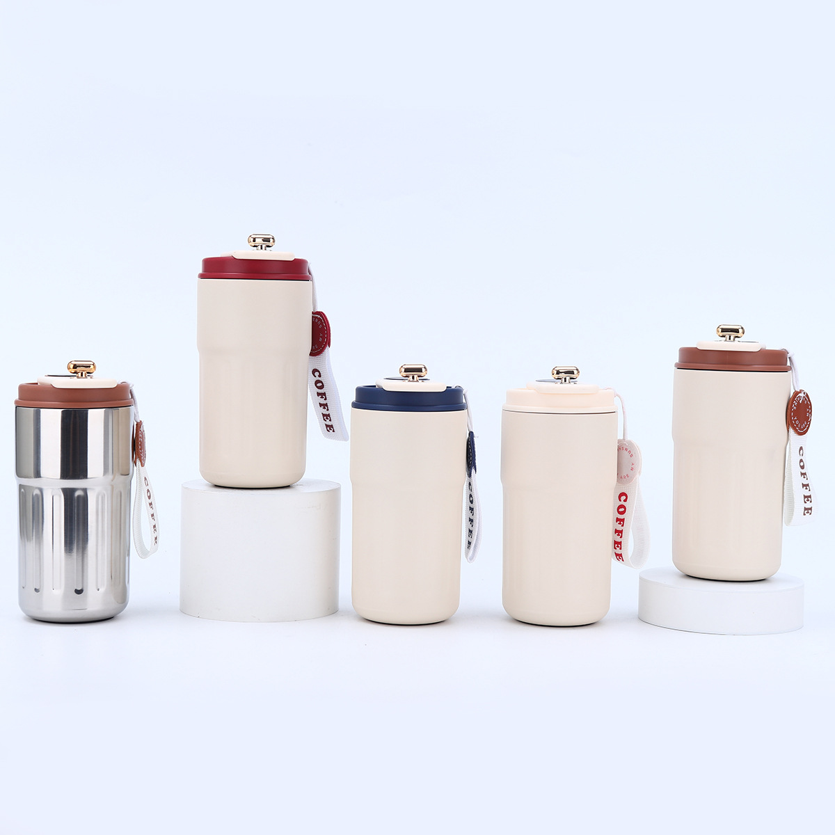 新款智能测温咖啡杯高颜值304不锈钢真空保温杯便携提绳随手杯