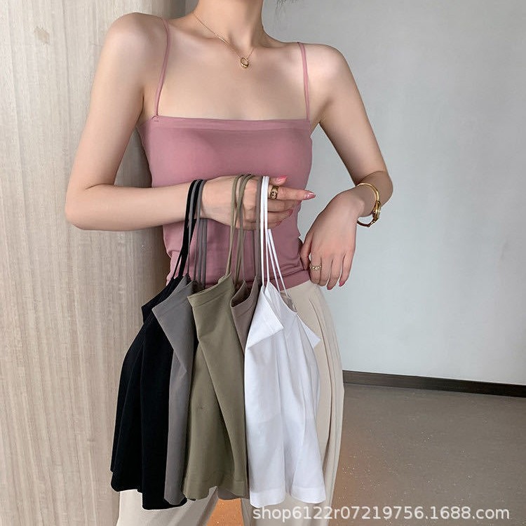 辣妹设计感小吊带内搭背心女带胸垫夏棉外穿显瘦百搭打底抹胸上衣