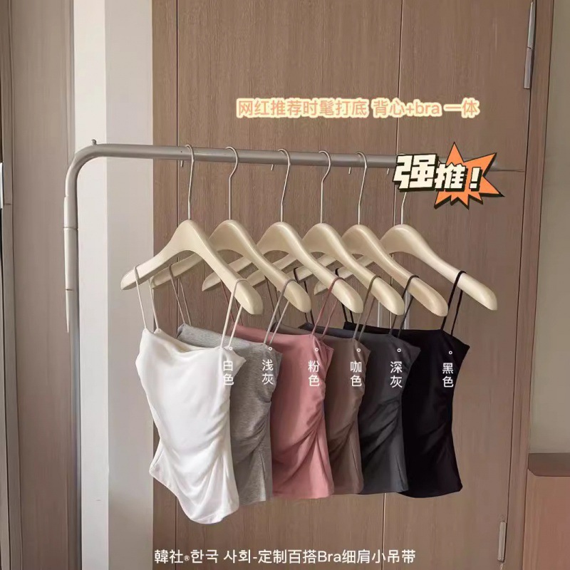 辣妹褶皱吊带背心女带胸垫内搭外穿美背细肩带显瘦打底上衣女夏季