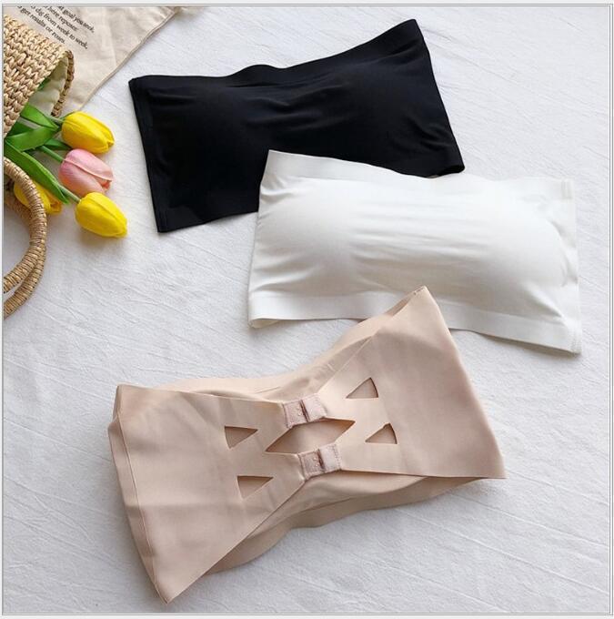 无肩带冰丝一字围裹胸透气防走光排扣运动防震防走光少女无痕美背