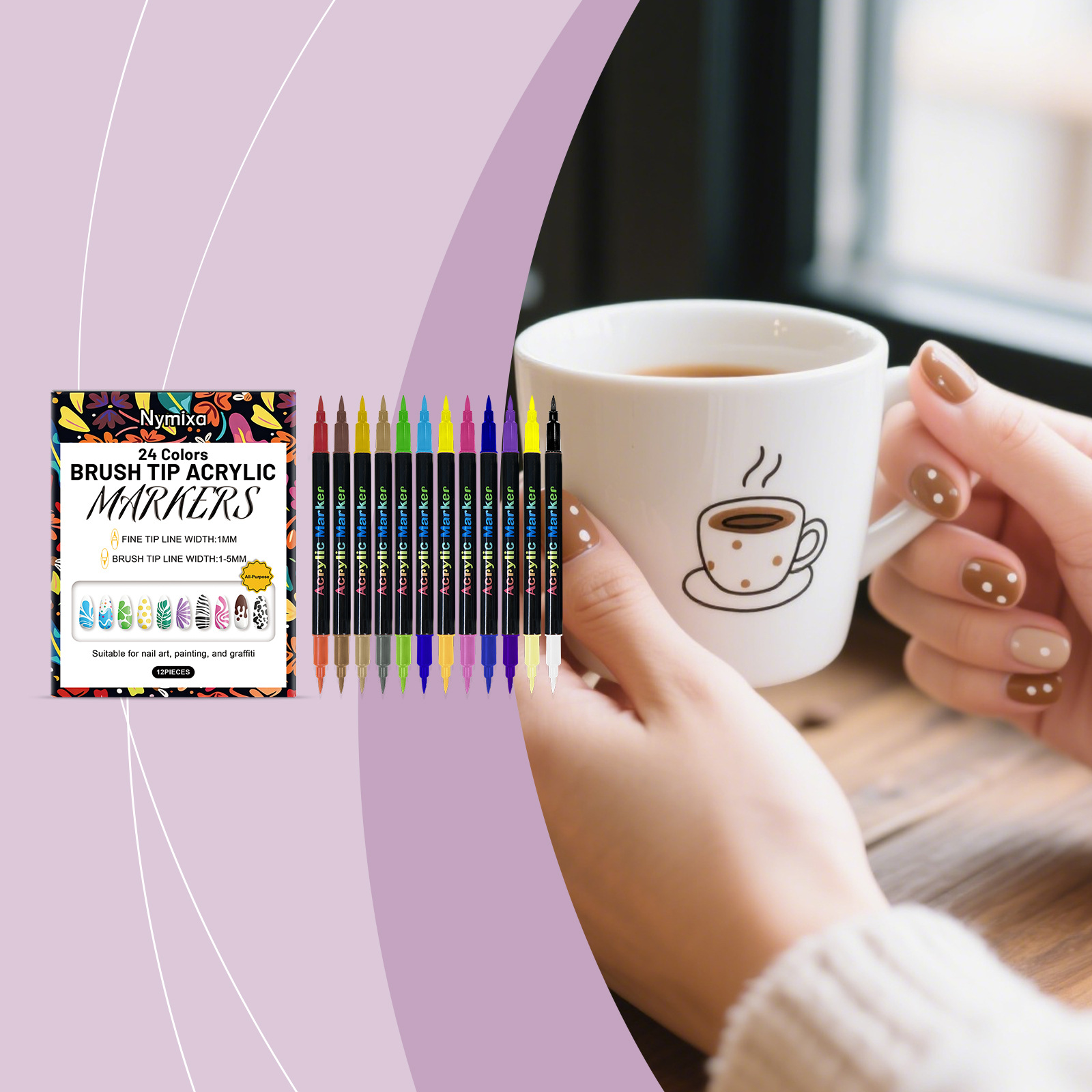 Nymixa 双头美甲涂鸦笔套装 速干色彩靓丽新手易涂易操作美甲工具