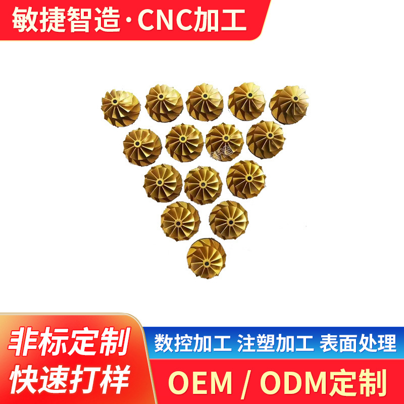 五轴高精密加工叶轮氧化金色cnc铝加工 高精度数控加工零件定制