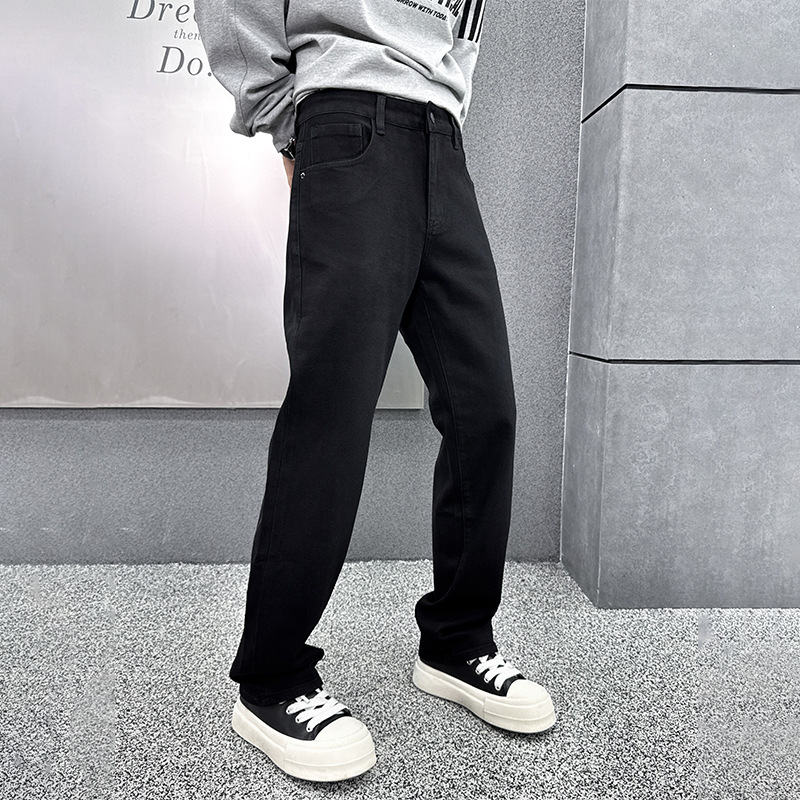 高端轻奢纯黑新款牛仔裤潮牌欧货韩版潮流直筒宽松百搭休闲长裤男