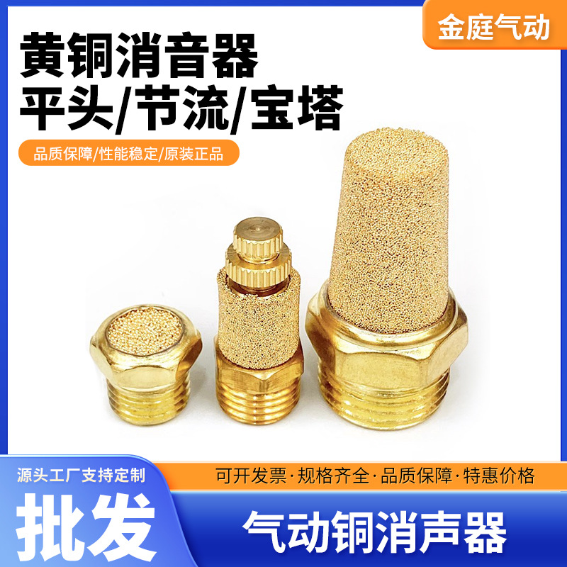 气动铜消声器平头节流长消音器BSL-01/02/03/04/06降噪静音接头