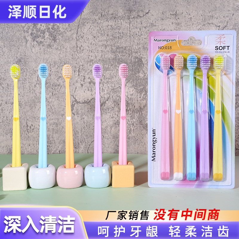 五支装软毛牙刷马卡龙色成人软毛牙刷家用待客超市批发爱心款牙刷