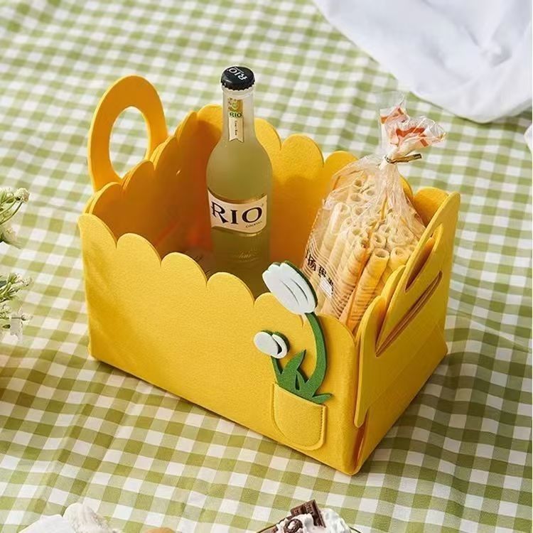 新款毛毡收纳筐学生宿舍郁金香置物架可折叠大容量桌面零食收纳盒