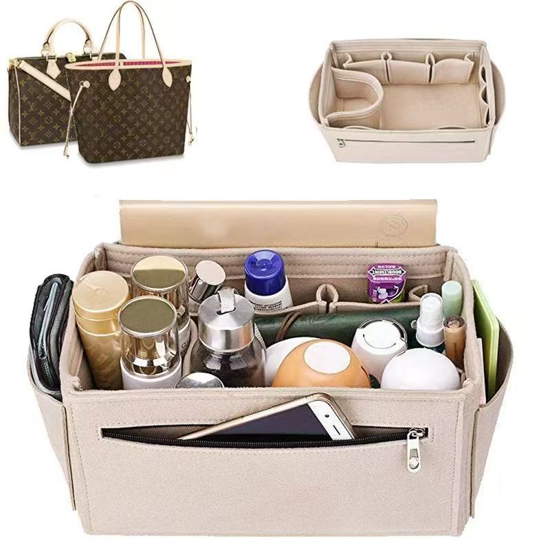 毛毡化妆包洗漱多功能分隔内胆托特化妆包中包中内衬整理收纳包
