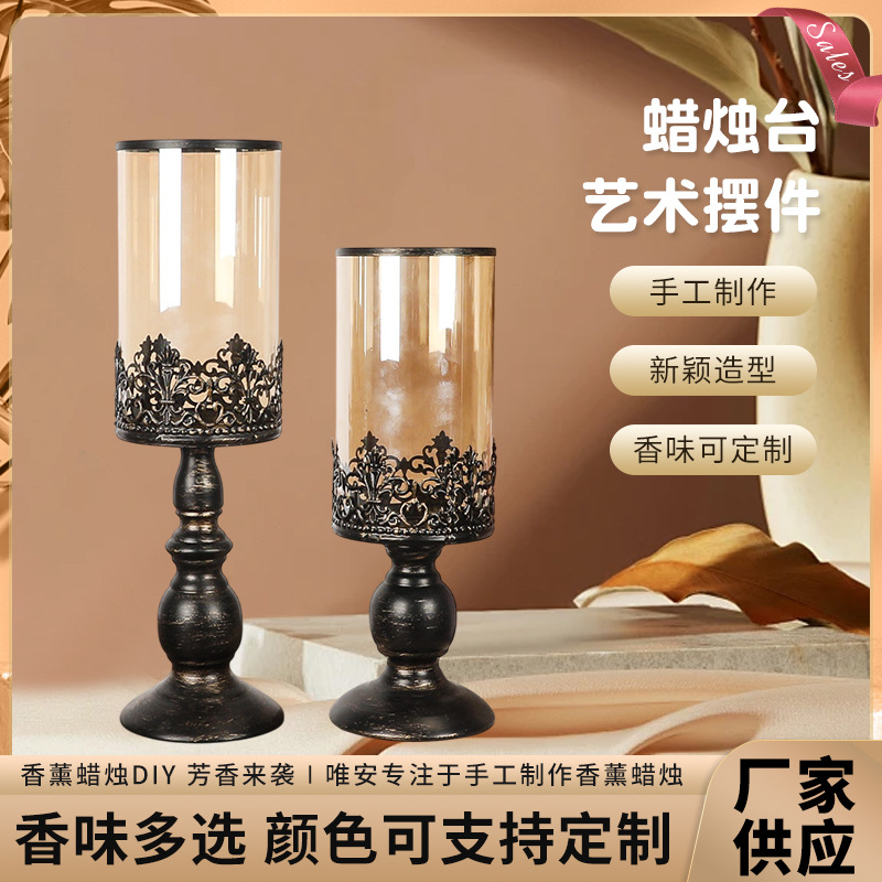 蜡烛台家居装饰工艺品摆件欧式摩洛哥玻璃复古铁艺烛台婚庆香薰